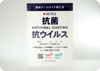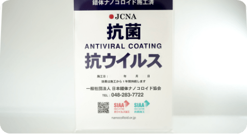 抗菌ウイルスSIAAマーク 錯体ナノコロイド水溶液「本体」・「塗布面」